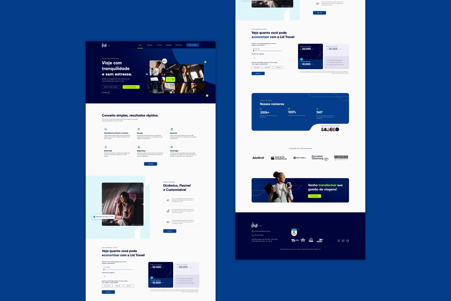 Para a nova presença digital da Lid Travel, o objetivo foi estruturar uma plataforma que organizasse a complexidade de seus serviços sem perder a fluidez da navegação. Implementamos Jornadas de Usuário Segmentadas, criando caminhos claros e intuitivos para os públicos de Corporativo, Eventos e Lazer.
